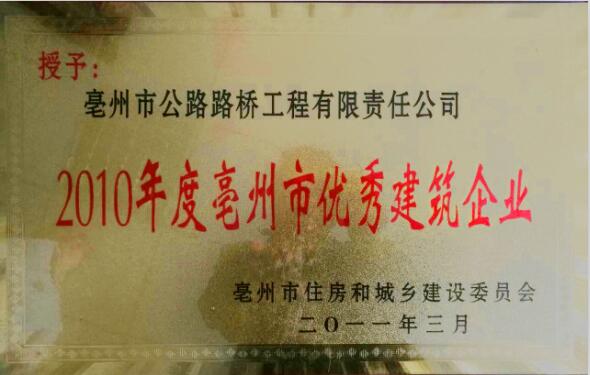 亳州市公路路橋工程有限責(zé)任公司是亳州市具有國家二級(jí)總承包資質(zhì)的公路工程施工企業(yè),它的前身是亳州市公路工程處。